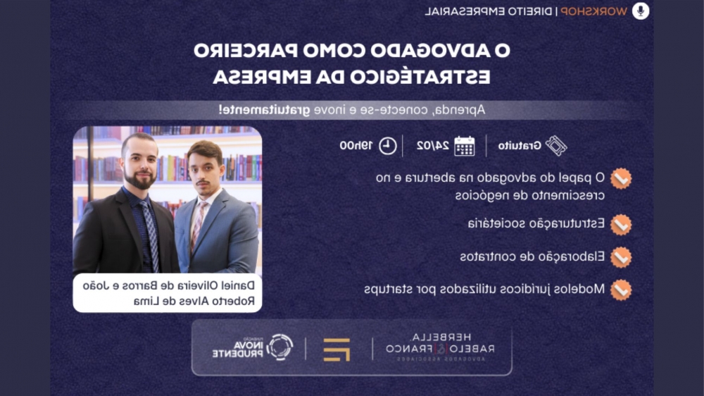 O encontro será conduzido por profissionais experientes na área, que ampliarão a visão dos participantes a respeito da atuação jurídica no ambiente empresarial: