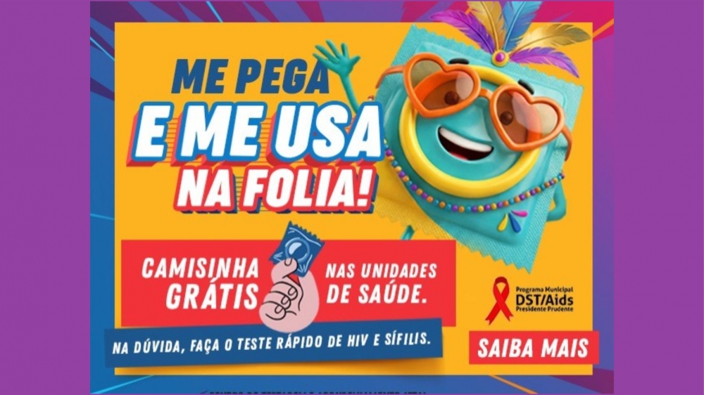 O Programa IST/Aids, da Secretaria Municipal de Saúde de Presidente Prudente (Sesau), anuncia o lançamento da campanha para conscientizar e orientar os foliões durante o PrudenFolia 2026, que vai acontecer no Parque do Povo, além da distribuição de insumos de prevenção, como preservativos.