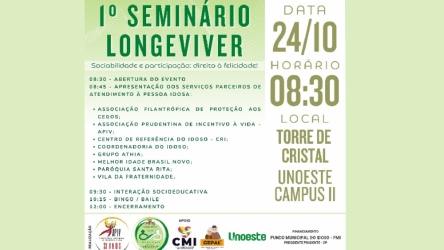 Seminário e palestra marcam programação voltada aos idosos nos dias 24 e 31 de outubro 22/10/2025 Seminário e palestra marcam programação voltada aos idosos nos dias 24 e 31 de outubro