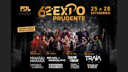 Expo Prudente tem grade de shows definida; lançamento oficial ocorre nesta 6ªfeira 29/08/2025 Expo Prudente tem grade de shows definida; lançamento oficial ocorre nesta 6ªfeira