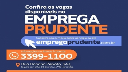 Emprega Prudente oferece 115 vagas de trabalho nesta terça dia 2 de setembro 02/09/2025 Emprega Prudente oferece 115 vagas de trabalho nesta terça dia 2 de setembro