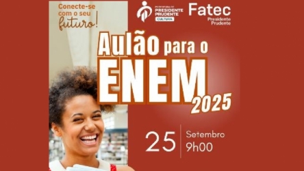 Secult e Fatec oferecem aulão de preparação para o Enem, dia 25 no Matarazzo 04/09/2025 Secult e Fatec oferecem aulão de preparação para o Enem, dia 25 no Matarazzo