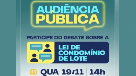 Seplan faz nesta quarta audiência pública para discutir nova lei de condomínios de lotes 18/11/2025 Seplan faz nesta quarta audiência pública para discutir nova lei de condomínios de lotes